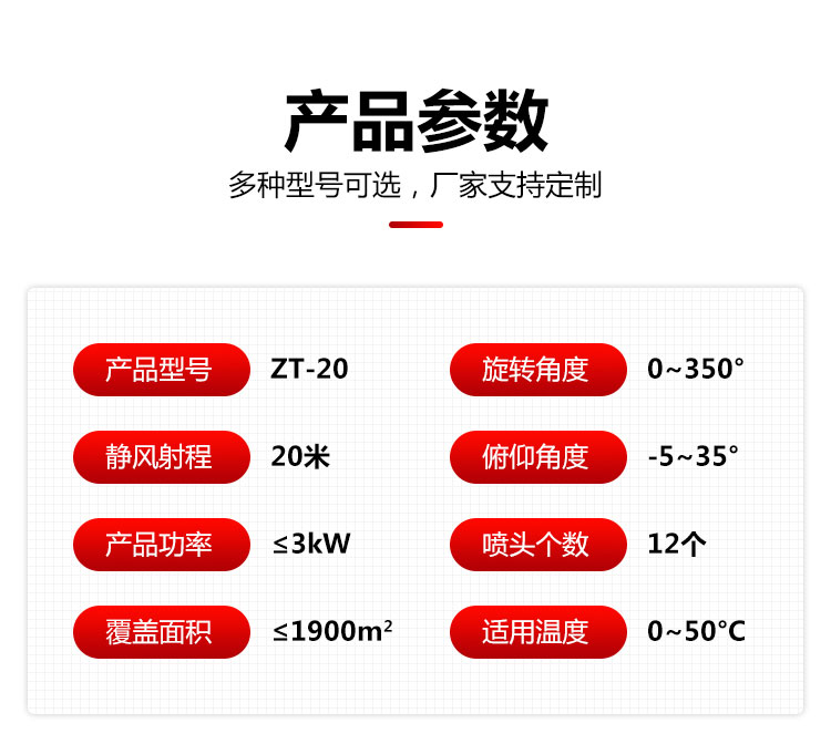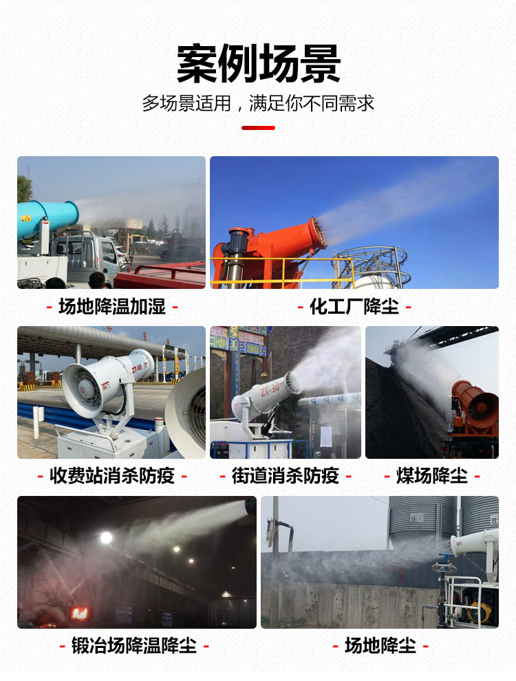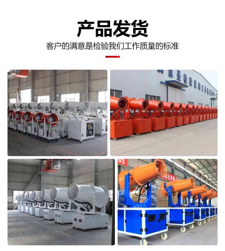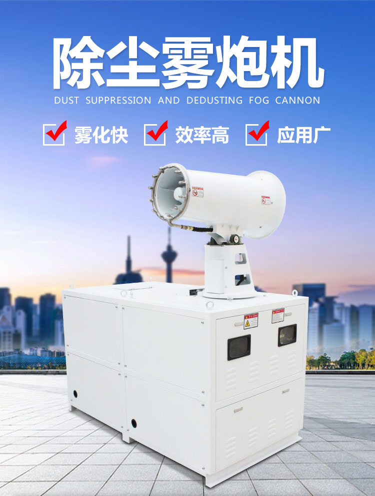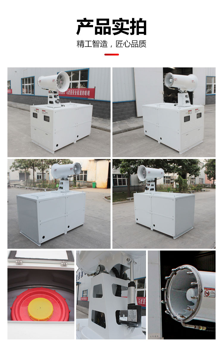 20米除尘雾炮机配备大容量1000L水箱,接在远离水源处工作,雾化快、效率高、应用广泛。