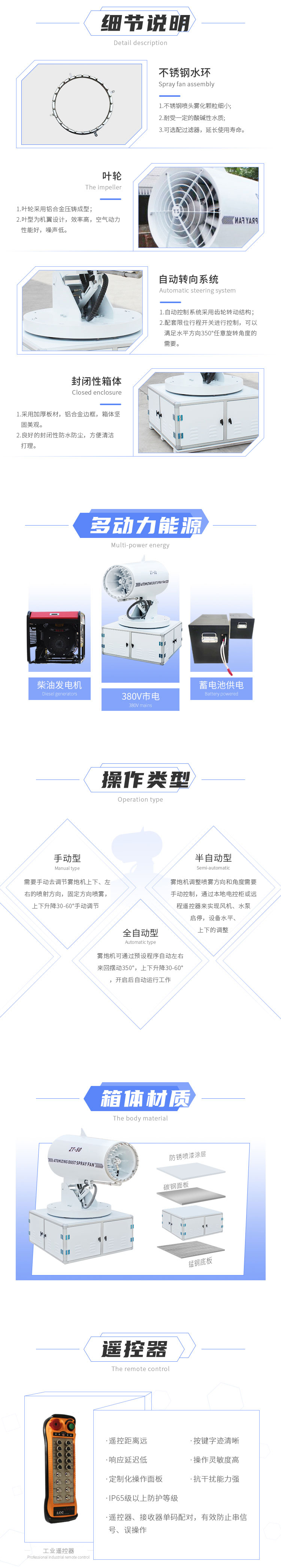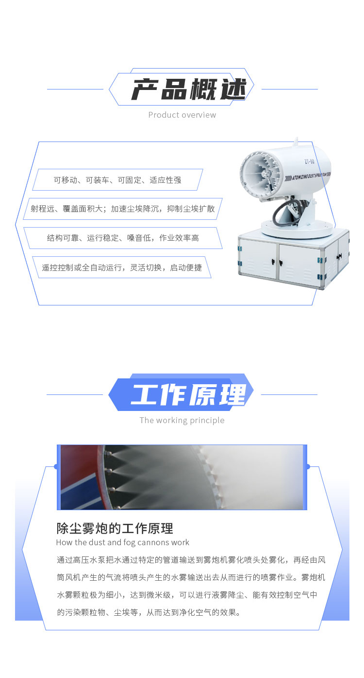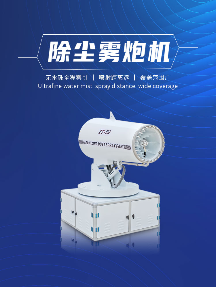 产品特点:50米除尘雾炮机可移动、可装车、可固定、适应性强;射程远、覆盖面积大,加速尘埃降沉,抑制尘埃扩散,结构可靠、运行稳定、作业效率高,??乜刂苹蛉远诵?灵活切换,启动便捷。