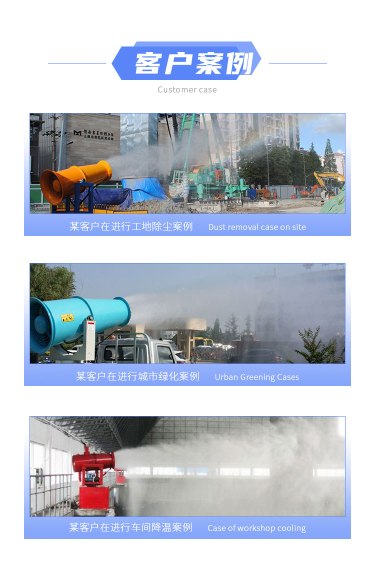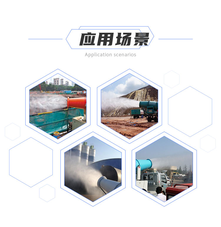 主要用途:适用于城市拆迁工地、冶金钢铁企业、采矿区域、煤化工企业、水泥厂、火力发电厂、建筑工地、物料和矿产品露天堆放厂、混凝土处理厂、垃圾堆放场、垃圾焚烧厂、沙厂、干式物料仓库、露天爆破、重度粉尘区域。