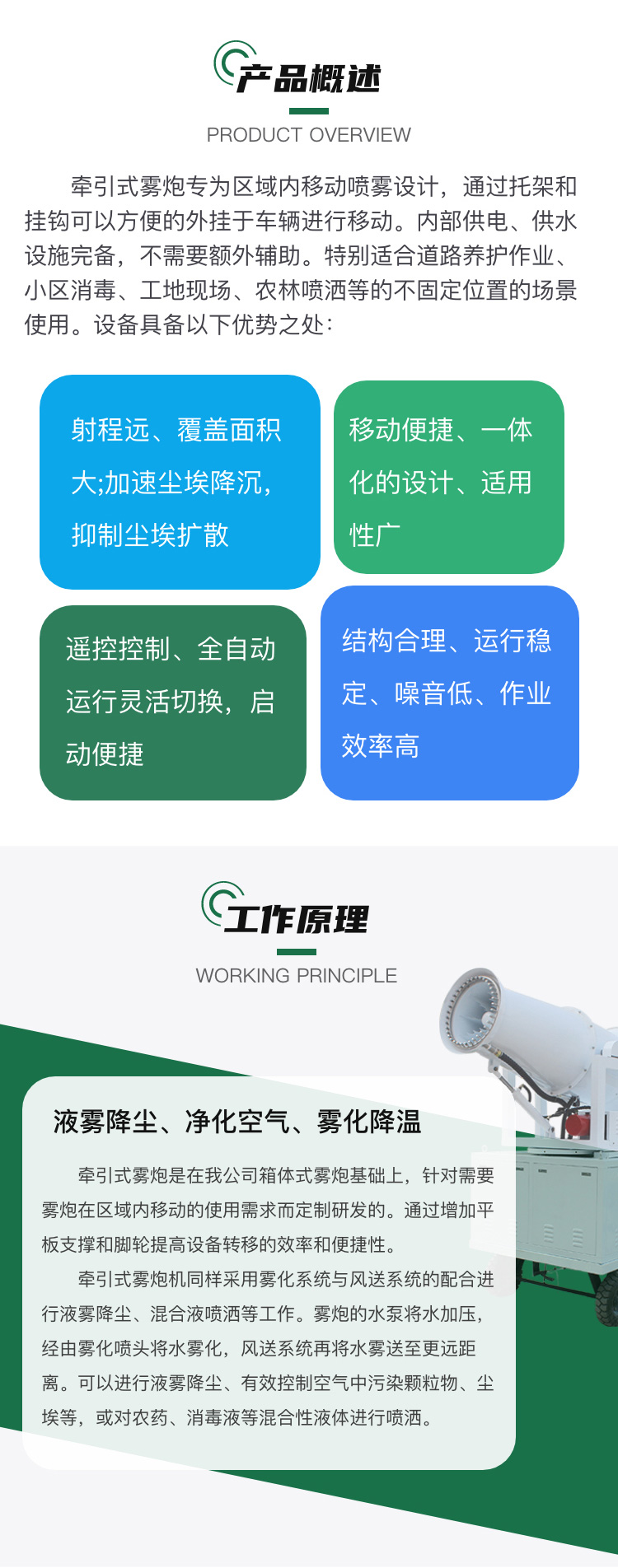 产品特点:60米牵引式箱体雾炮移动方便、射程远、覆盖范围广,使用安全可靠,??睾腿斯た刂撇僮?,可随意控制调节水平旋转喷雾角度。