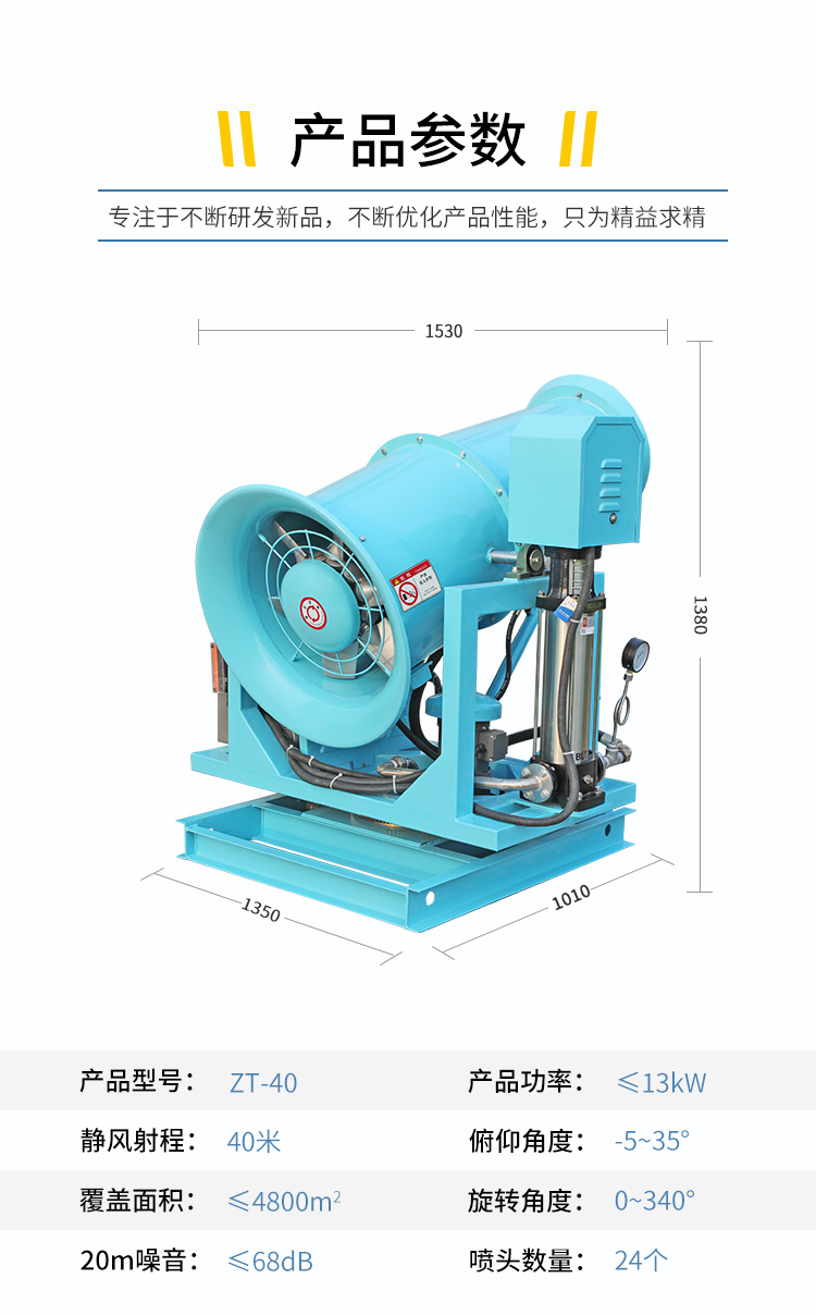 产品特点:50米全自动远程雾炮机快速降尘、射程远、覆盖范围广、可以实现精量喷雾;工作效率高、喷雾速度快;配套动力灵活,可定制化。