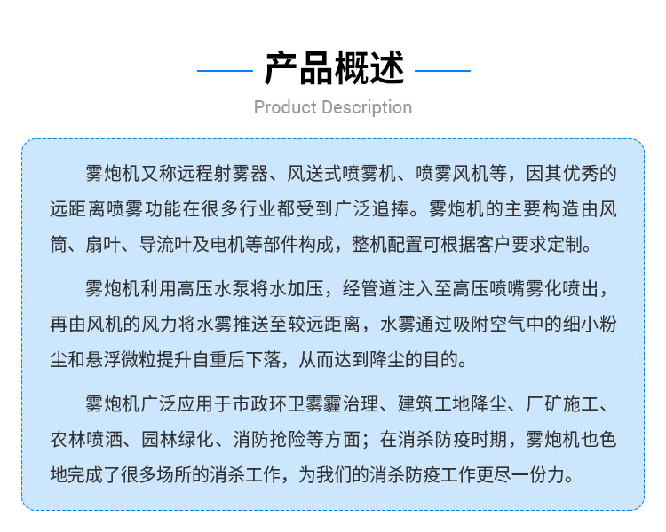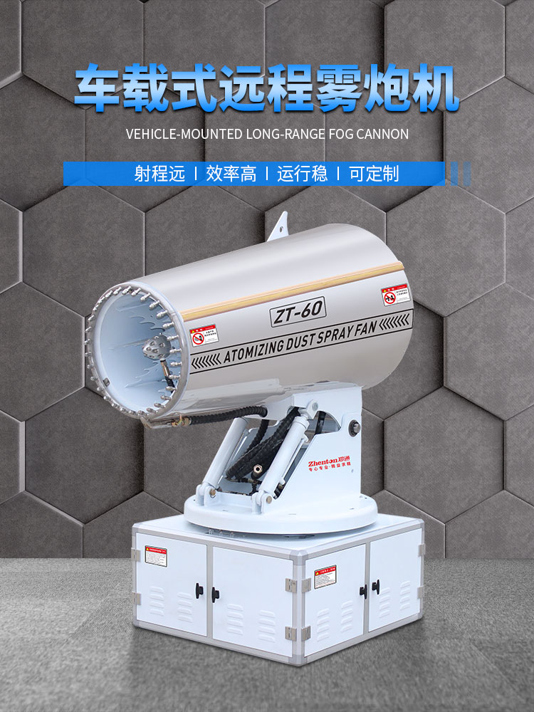 产品特点:60米远程雾炮机具有结构紧凑,稳固可靠,整体高度低,喷雾距离远,综合性能优越等特点。