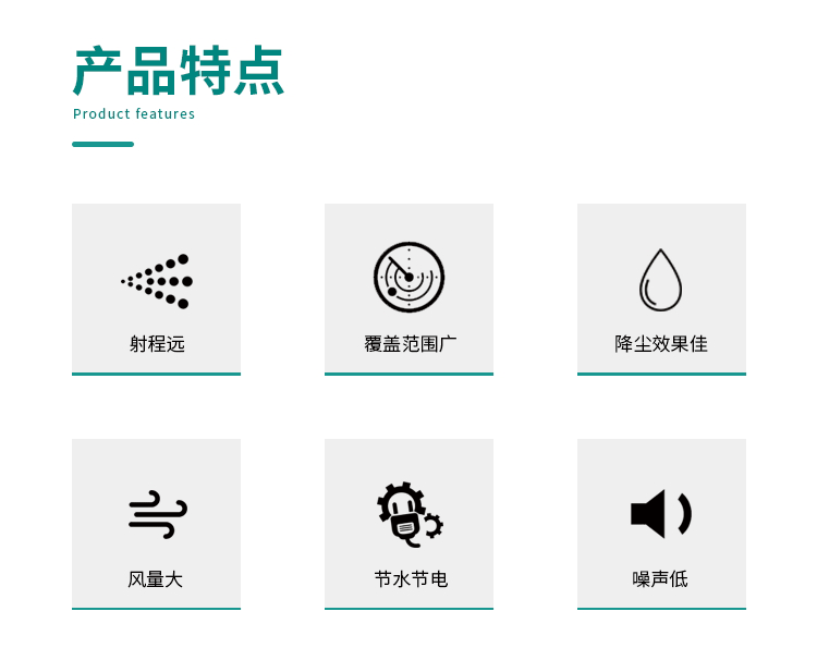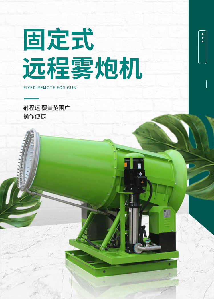 产品特点:高台固定式雾炮机射程远、覆盖范围广、工作效率高、可以实现精量喷雾;喷出的雾粒细小,能快速将粉尘抑制;配套动力灵活,使用安全可靠。