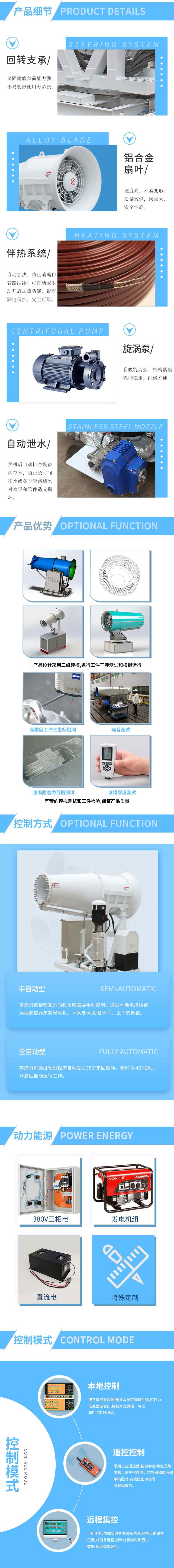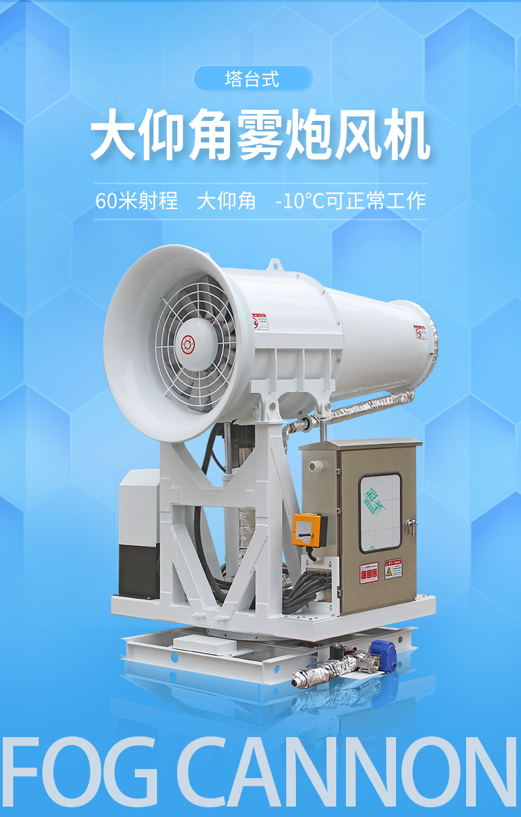 产品特点:塔台式矿场降尘雾炮风机有着让人惊叹的-45-30度的上下移动区间,同时,针对塔台式安装方式而确定的更加牢固的底座+支撑结构的设计增强了设备的稳定性和可靠性。