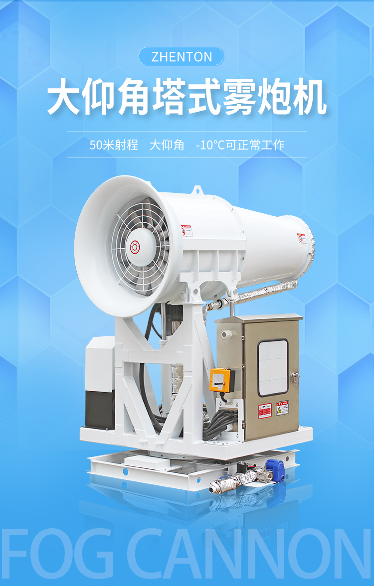 产品特点:塔式大仰角降尘雾炮有着让人惊叹的-45°-30°的上下移动区间,同时,针对塔台式安装方式而确定的更加牢固的底座+支撑结构的设计增强了设备的稳定性和可靠性。