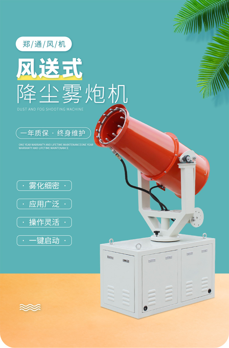 产品特点:固定式降尘雾炮机射程远、覆盖面积大,加速尘埃降沉,抑制尘埃扩散;控制方式灵活,启动便捷;结构合理、运行稳定、噪音低,作业效率高。