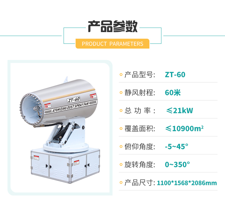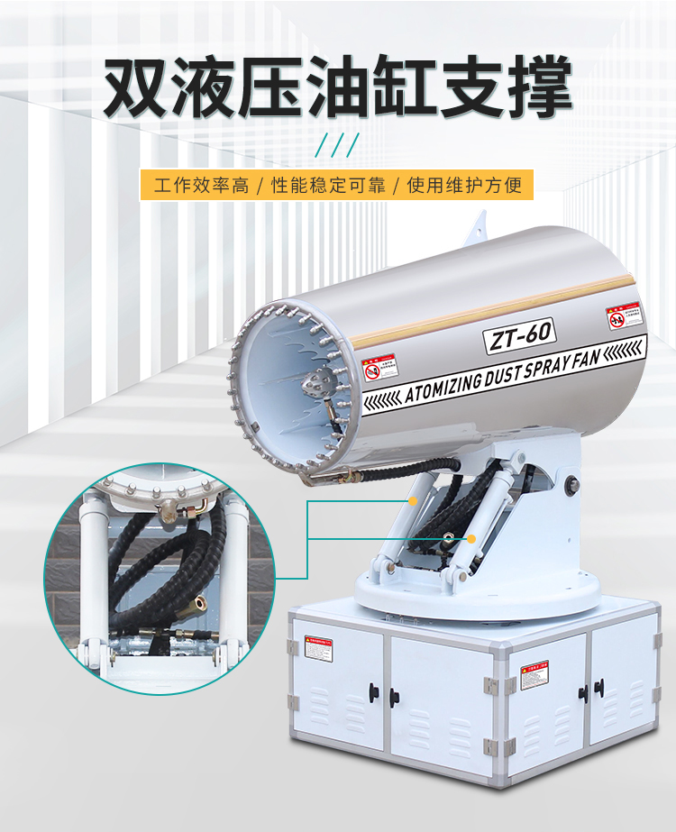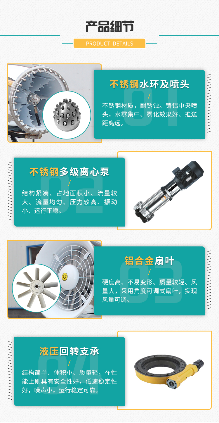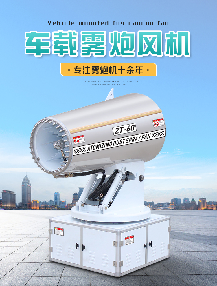 产品特点:60米车载雾炮风机采用镜面不锈钢外壳,耐锈蚀易清洁,线性喷雾,射程远覆盖范围广。