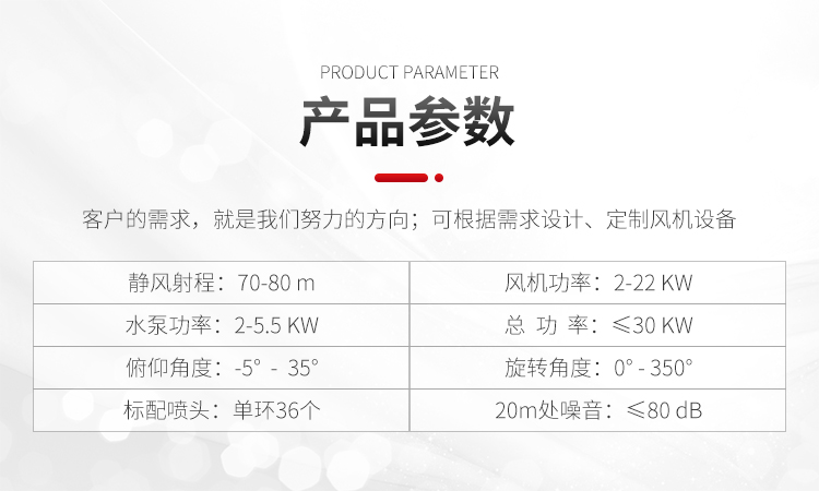 产品特点:70米抑尘雾炮机射程远、穿透性强、覆盖范围广,水雾颗粒细小、喷洒更加均匀、降尘速度快、工作效率更高。