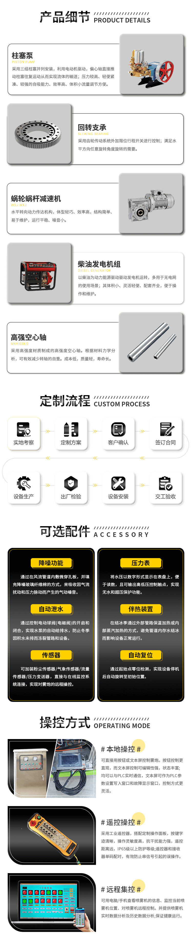 主要用途:建筑工地 煤场,矿场、料场、码头工业除尘,农业,园林绿化等飞机场、高速公路、车站、码头、公共场所、运动场地、炎热场地等降尘保湿降温消毒。