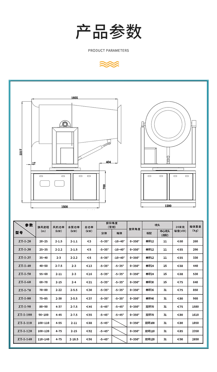 主要用途:用于城市拆迁工地、冶金钢铁企业、采矿区域、煤化工企业、水泥厂、火力发电厂、建筑工地、物料和矿产品露天堆放厂、混凝土处理厂、垃圾堆放场、垃圾焚烧厂、沙厂、干式物料仓库、露天爆破、重度粉尘区域。