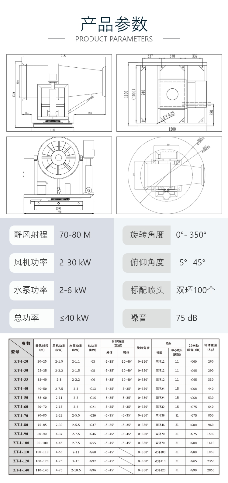 产品特点:70米除尘式喷雾炮机射程远、覆盖范围广、工作效率高、可以实现精量喷雾;配套动力灵活,使用安全可靠。