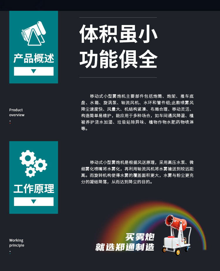 果园移动式小型喷雾机降尘速度快、风量大、机结构紧凑、布局合理、移动灵活、构造简单易维护。