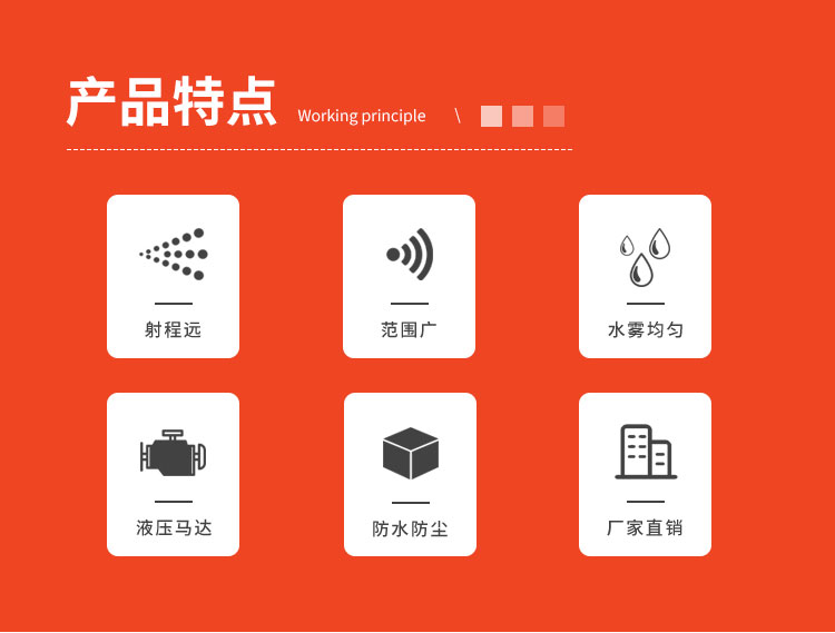 主要用途:用于煤矿场、城市拆迁工地、冶金钢铁企业、采矿区域、煤化工企业、水泥厂、火力发电厂、物料和矿产品露天堆放厂、混凝土处理厂、垃圾堆放场、垃圾焚烧厂、沙厂、干式物料仓库、露天爆破、重度粉尘区域。