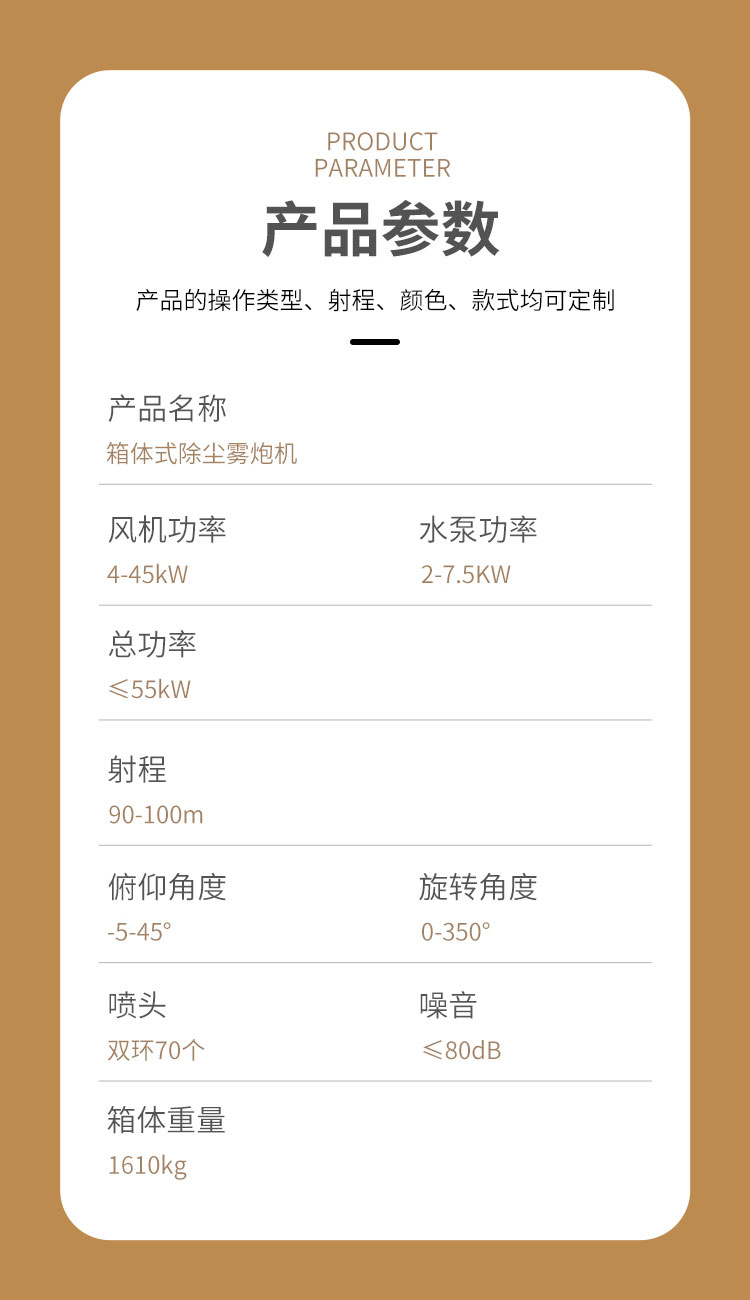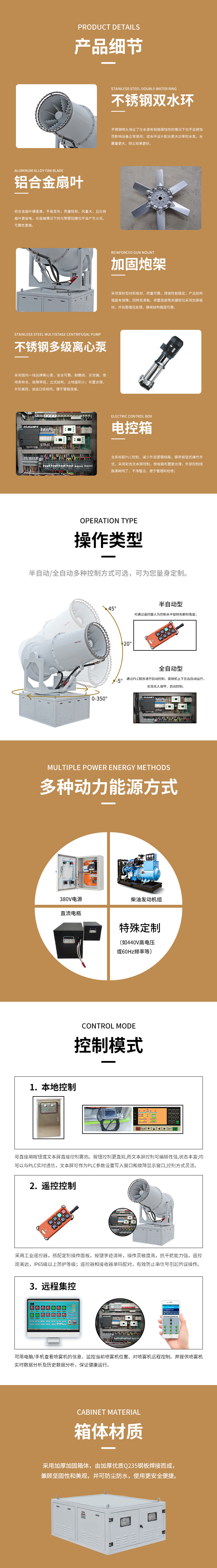 产品特点:大型除尘喷雾炮喷雾距离远、覆盖范围广、雾化颗粒细、降尘效果佳、运行平稳使用安全可靠。