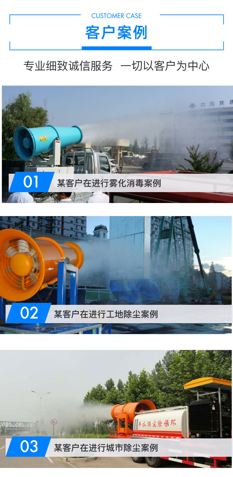 主要用途:用于煤矿场、城市拆迁工地、冶金钢铁企业、采矿区域、煤化工企业、水泥厂、火力发电厂、物料和矿产品露天堆放厂、混凝土处理厂、垃圾堆放场、垃圾焚烧厂、沙厂、干式物料仓库、露天爆破、重度粉尘区域。