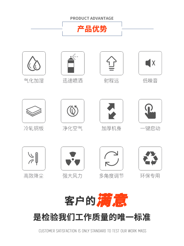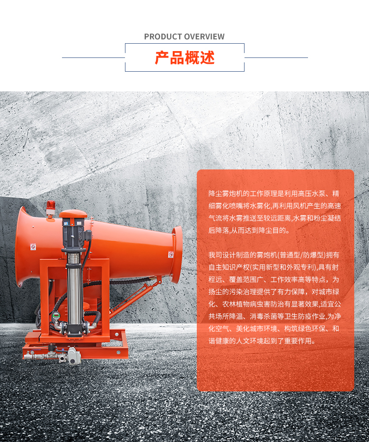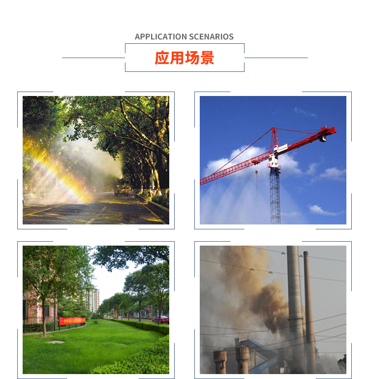 主要用途:用于煤矿场、城市拆迁工地、冶金钢铁企业、采矿区域、煤化工企业、水泥厂、火力发电厂、物料和矿产品露天堆放厂、混凝土处理厂、垃圾堆放场、垃圾焚烧厂、沙厂、干式物料仓库、露天爆破、重度粉尘区域。