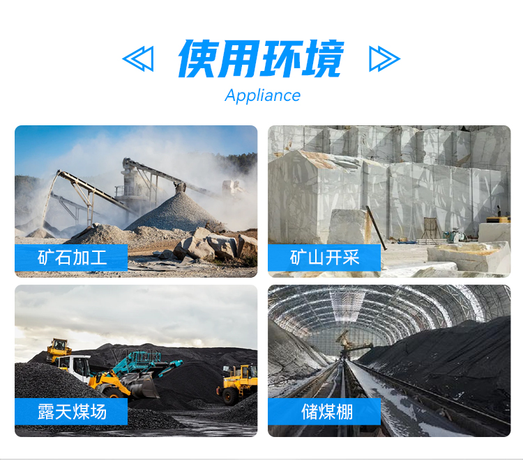 主要用途:可用于煤矿场、城市拆迁工地、冶金钢铁企业、采矿区域等多种特殊环境。