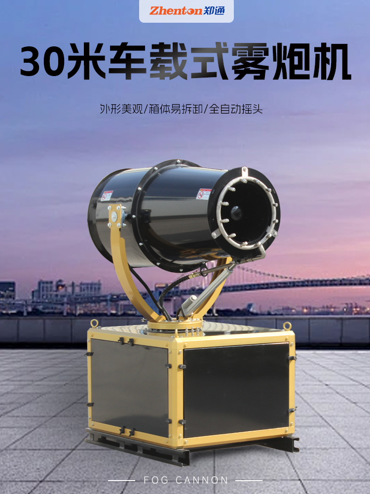 产品特点:30米车载式雾炮机外形美观、箱体易拆卸、全自动摇头,风筒采用穿孔板材质、噪音低、操作方便、喷雾颗粒均匀、可搭配洒水车配套使用。