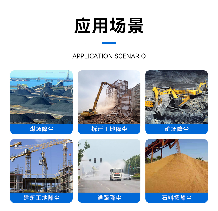 主要用途:工地降尘、石料厂、煤场、矿山、高盐废水处理、蒸发塘雾化、钢厂等场景。