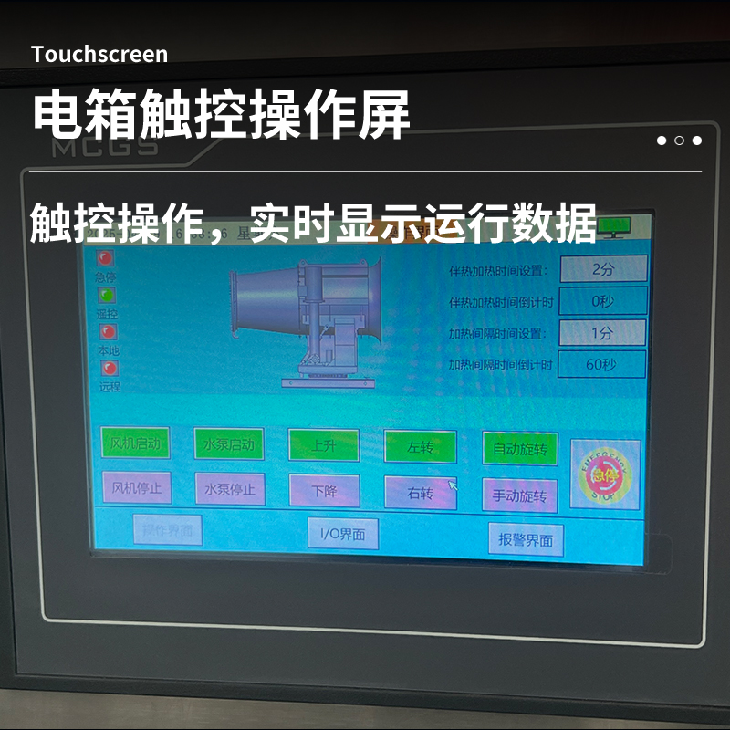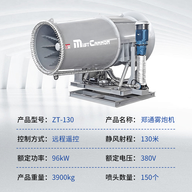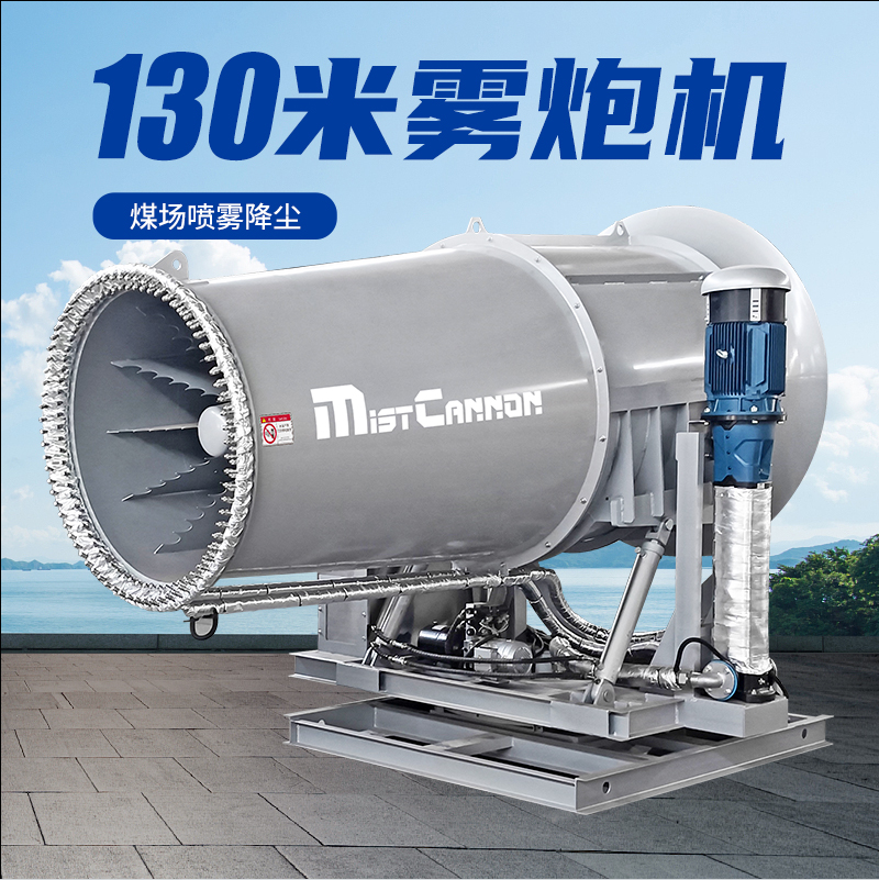 产品特点:130米雾炮机是一款专为煤场等大型粉尘作业环境设计的高效降尘设备。其采用高压喷雾技术,将水雾化成微米级细小颗粒,通过大功率风机送至130米超远距离,覆盖范围广、穿透性强。设备配备全自动控制系统,支持水平350度旋转及俯仰角度调节,可灵活应对煤场不同区域的扬尘问题,实现精准抑尘。