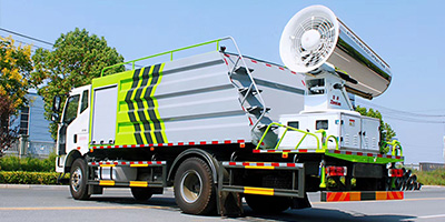 车载式雾炮机的主要构成部分是由:纯铜电机、机壳、集流器、不锈钢喷头、防护网、液压(或电动)推杆、铝合金扇叶、支撑结构、PLC配电柜、回转支撑、散热百叶孔、集成箱体、不锈钢多级离心泵(柱塞泵、旋涡泵可选配)等。