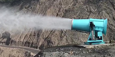 通过高压水泵把水加压通过特定的管道输送到喷头处,再由风筒产生气流将微雾粒子输送出去从而进行喷雾作业。
